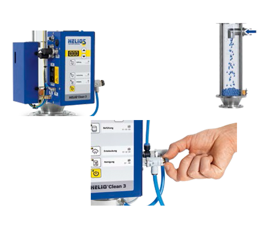 新的HELIO?Clean 3傳送帶/除塵裝置是專為具有中、小流量的注塑工 藝而開發(fā)的,適用于安裝在注塑裝置或干燥容器上。