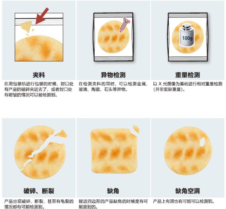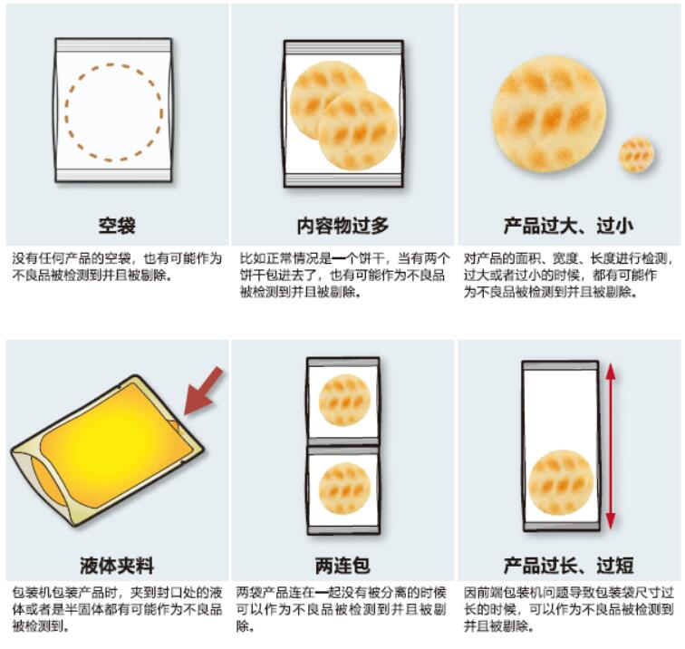 這樣就可以解決以前的機器檢測不到的“封口處夾料”、“異物”、“相對重量”、“形狀”等重大課題。