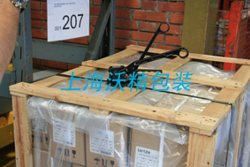紙箱托用木框保護(hù),再用鋼帶打緊