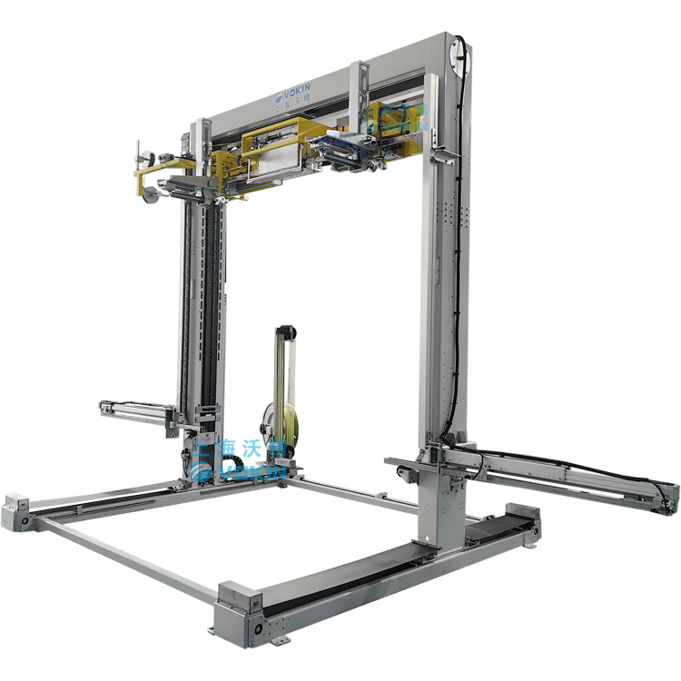 移動(dòng)式打帶機(jī)可以自動(dòng)尋找打帶位置并且配合打帶機(jī)底部的旋轉(zhuǎn)臺(tái)輸送機(jī),可以完成井字型打帶,并且可短護(hù)角保護(hù)產(chǎn)品不被打包帶損傷。