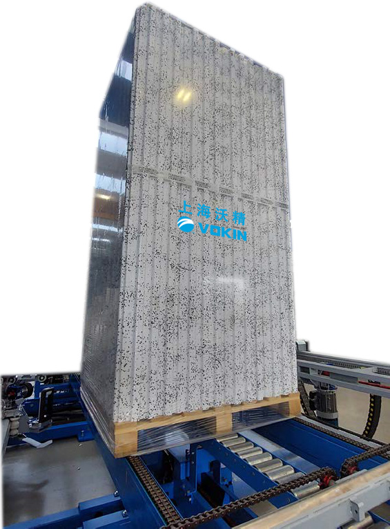 套袋過程過程中還包括一個外形輪廓控制系統,它根據跺型的實際尺寸自動調整薄膜位置,保持薄膜拉伸力的平衡。