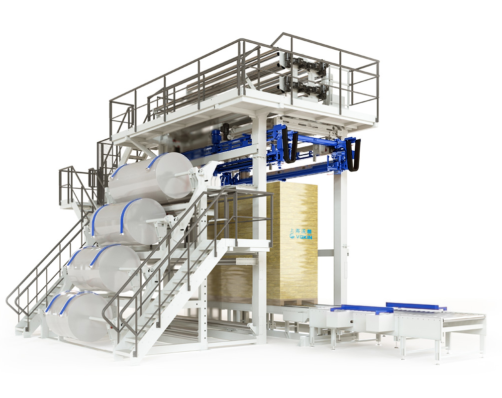 冷拉伸膜套膜包裝機 VSH 2000用更少量的包裝材料包裝貨物,防水防塵,貨物可以存放戶外,或被敞開平板車戶外運輸。