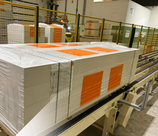 它能自動識別托盤垛形的外形尺寸,選擇正確尺寸的膜,并且不會造成停機時間,加快了包裝速度。